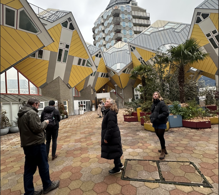 Our time in Rotterdam provided a broader urban contrast, reminding us that Dutch planning is not uniform or static. Iconic projects such as the Cube Houses sit alongside contemporary debates about density, liveability and movement in a major city.