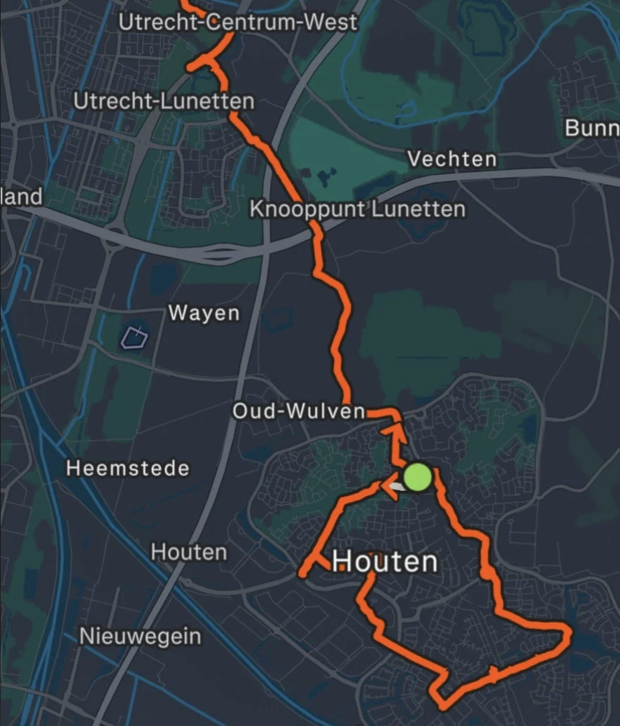 It was cycling between Houten and Utrecht at night, during rush hour.