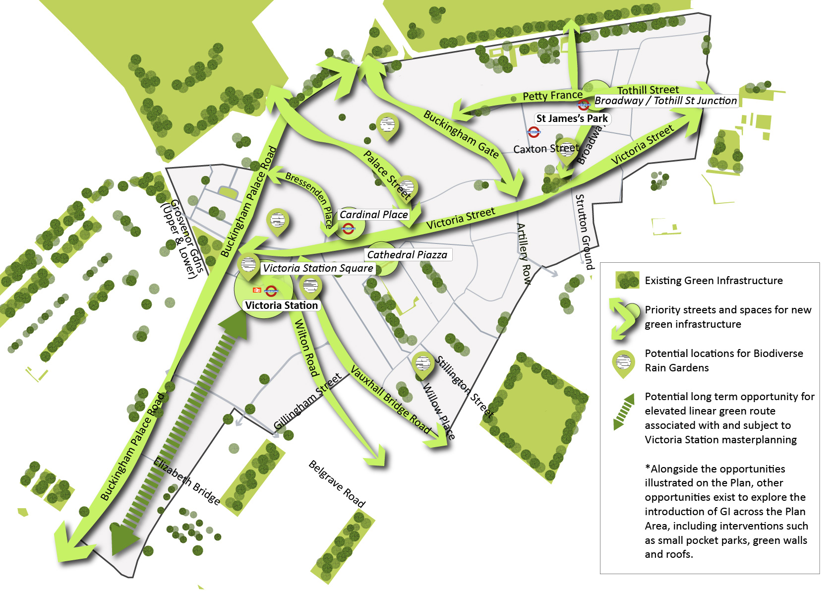 - Improving Victoria Street as a high quality green avenue